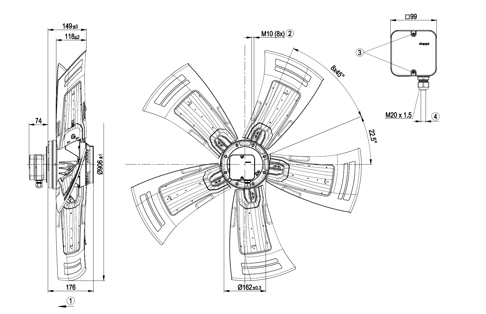 Замеры производительности соответствуют ISO 5801 категория А. Для детального уточнения способа замеров, Вам необходимо обратиться к специалистам ebm-papst. Уровень звукового давления со стороны всасывания: LwA по ISO 13347 / LpA с расстоянием 1м от оси вентилятора. Данные действительны только при указанных условиях измерения и могут варьироваться в зависимости от условий установки. При отклонении от стандартной конфигурации, необходимо проверить все значения в собранной установке.
