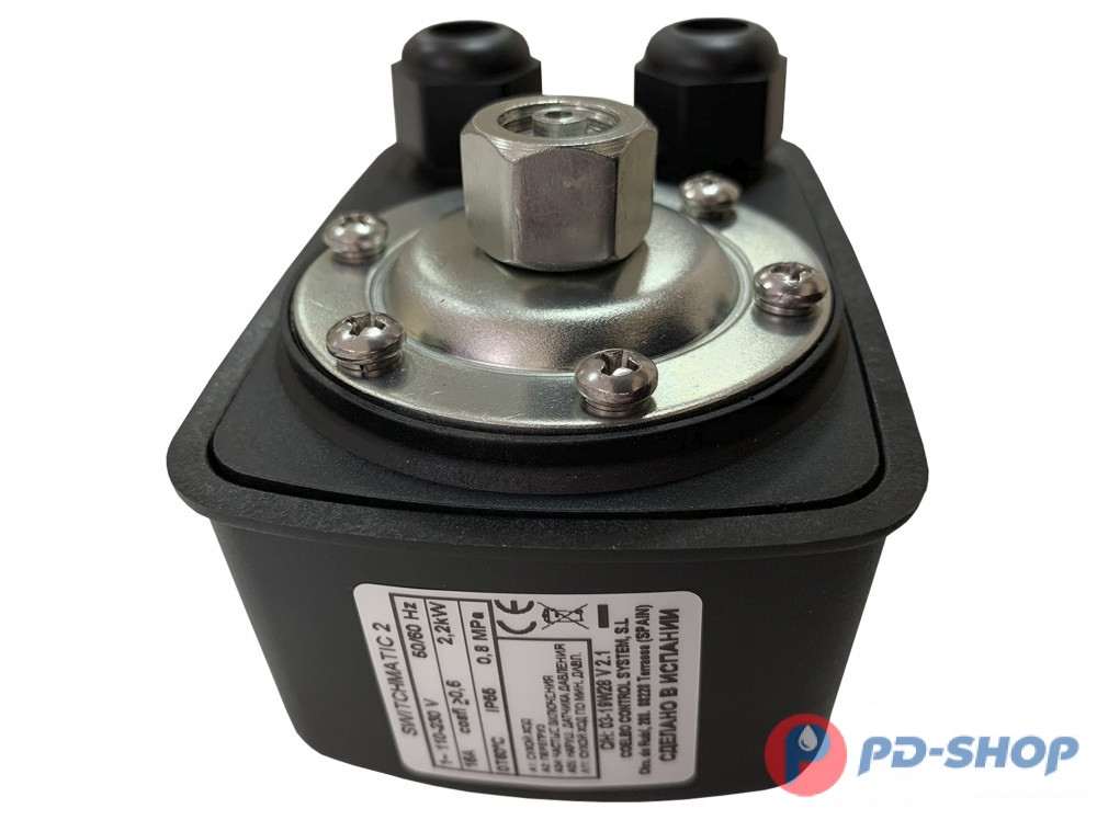 Электрическое подключение идентичное обычному реле давления. Мощность контакта - 16 Ампер, для насосов до 2,2 кВт.