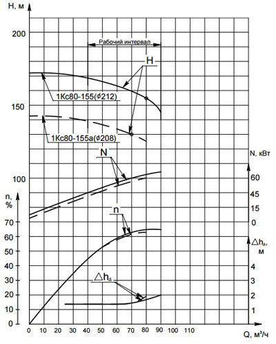 Характеристика насоса 1Кс80-155.